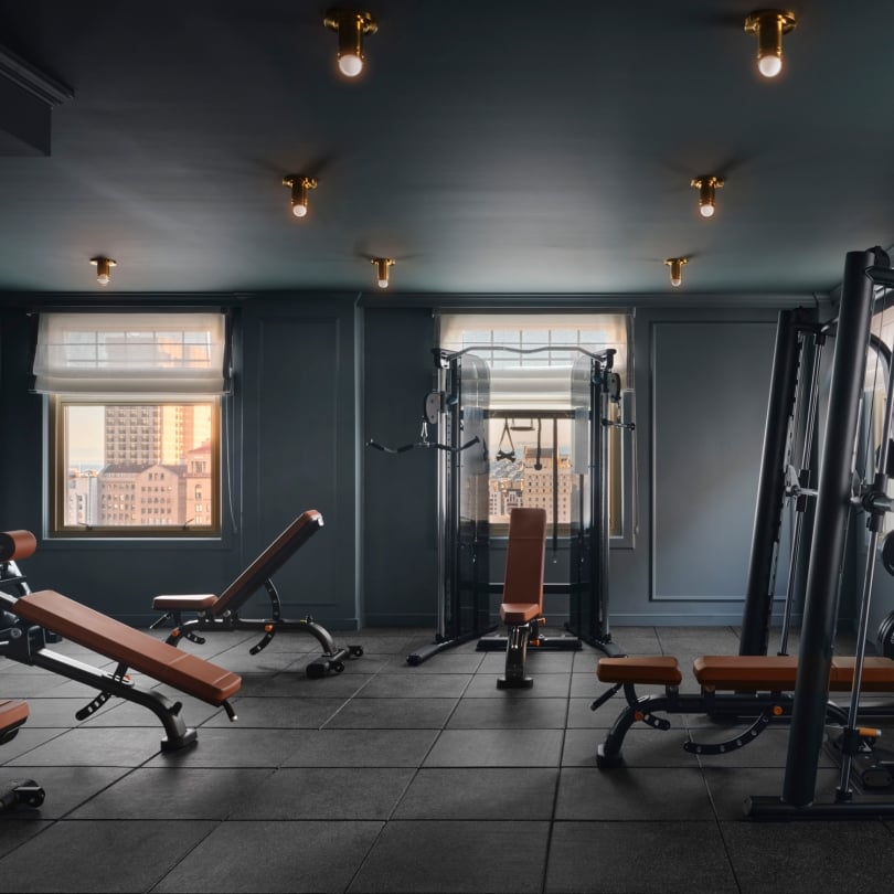 On the second floor, the 1,800 square foot Fitness Center offers guests of The Huntington Hotel and Nob Hill Spa an elegant, all-hours space for functional movement and elevated wellness routines, with room to breathe.